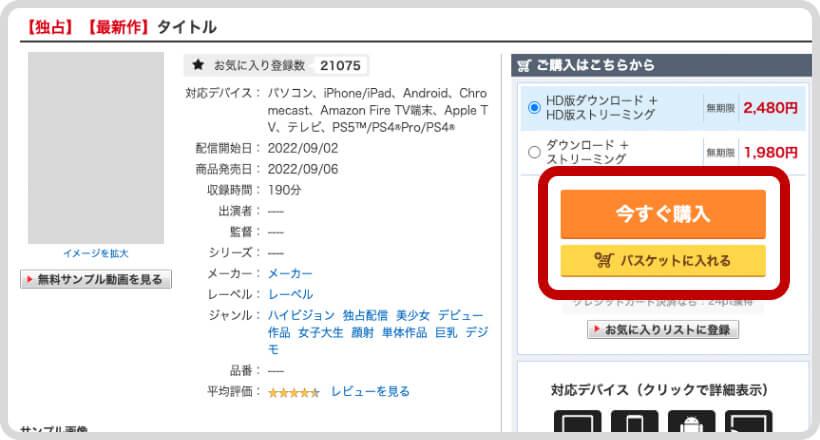 初回クーポンをゲットしたら、お好きな動画を選び、今すぐ購入をタップ!!!